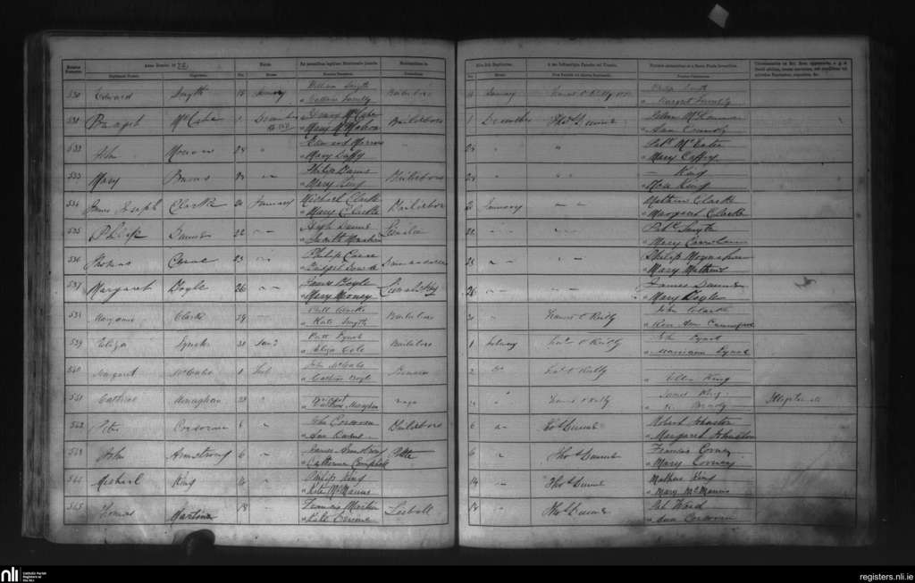 Killanne; County of Cavan; Diocese of Kilmore. Baptisms, Dec. 1871 to Feb. 1872