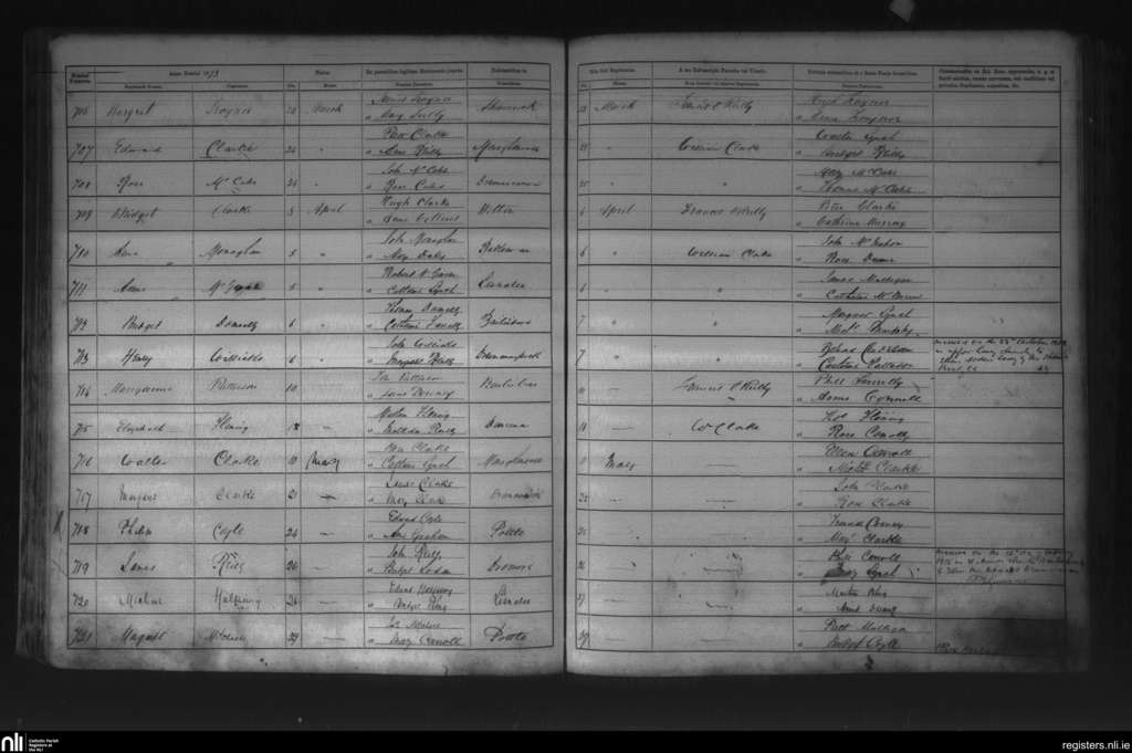 Killanne; County of Cavan; Diocese of Kilmore. Baptisms, Mar. 1873 to May 1873