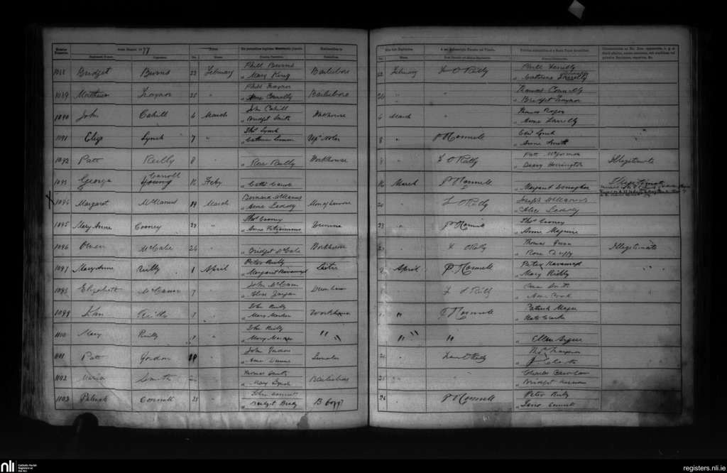 Killanne; County of Cavan; Diocese of Kilmore. Baptisms, Feb. 1877 to Apr. 1877