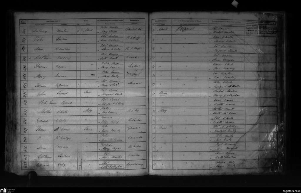 Killanne; County of Cavan; Diocese of Kilmore. Baptisms, Apr. 1875 to June 1875