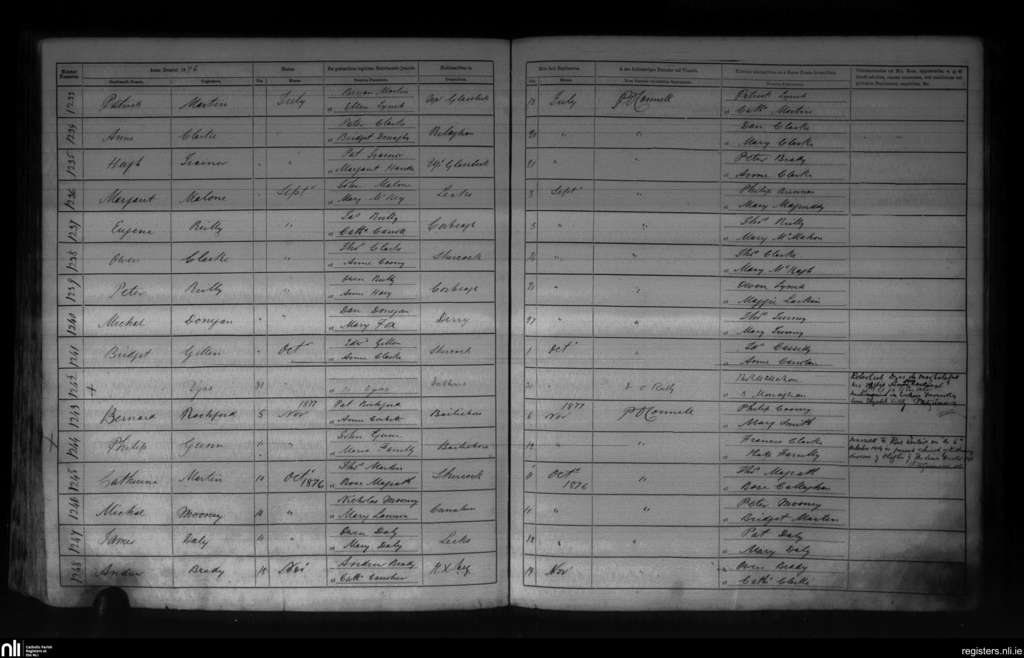 Killanne; County of Cavan; Diocese of Kilmore. Baptisms, July 1876 to Nov. 1877