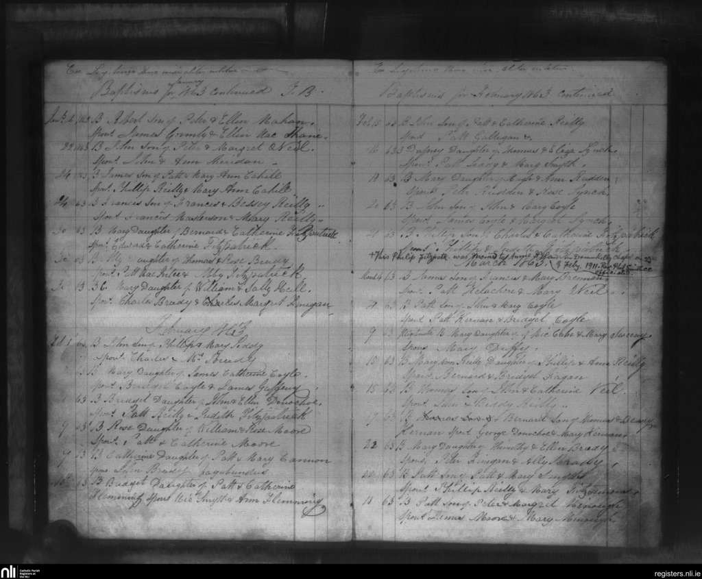 Ballintemple; County of Cavan; Diocese of Kilmore. Baptisms, Jan. 1863 to Mar. 1863