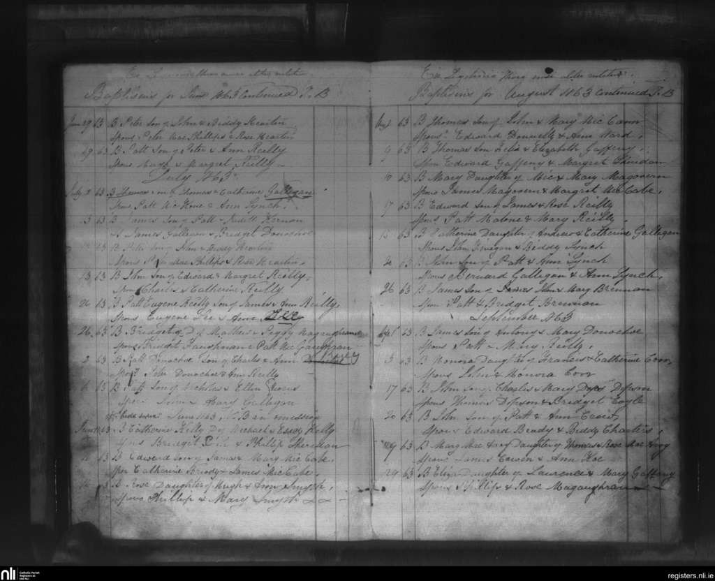 Ballintemple; County of Cavan; Diocese of Kilmore. Baptisms, June 1863 to Sep. 1863