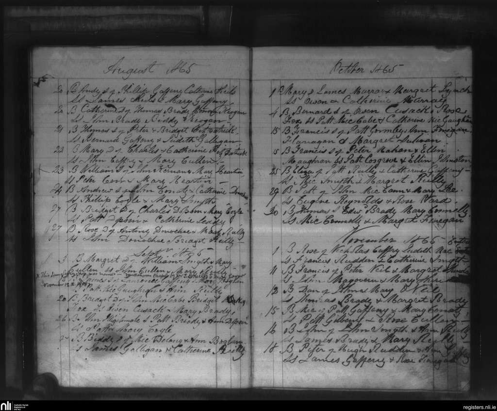 Ballintemple; County of Cavan; Diocese of Kilmore. Baptisms, Aug. 1865 to Nov. 1865