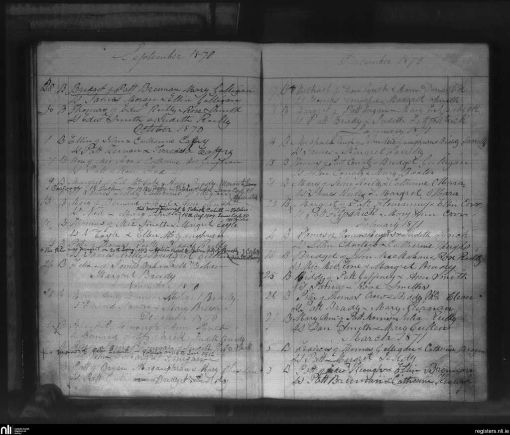 Ballintemple; County of Cavan; Diocese of Kilmore. Baptisms, Sep. 1870 to Mar. 1871