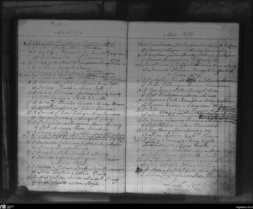 Ballintemple; County of Cavan; Diocese of Kilmore. Baptisms, Apr. 1874 to July 1874
