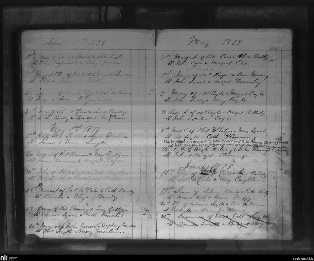 Ballintemple; County of Cavan; Diocese of Kilmore. Baptisms, Apr. 1878 to June 1878