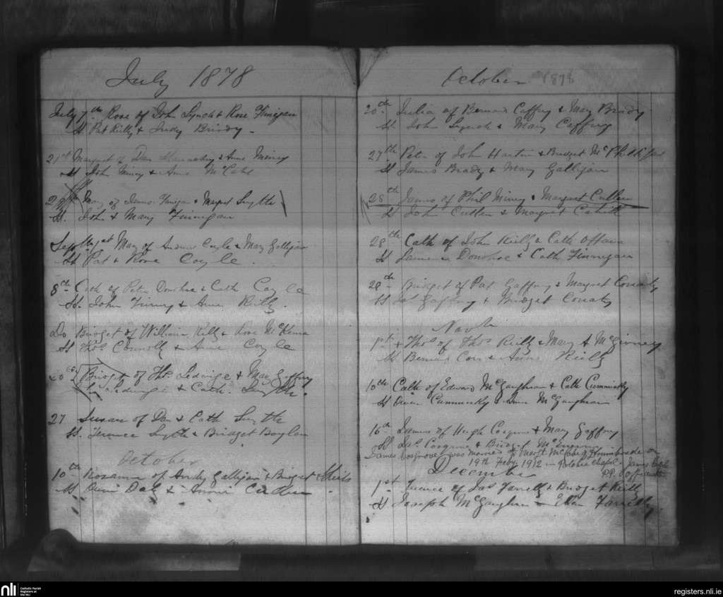 Ballintemple; County of Cavan; Diocese of Kilmore. Baptisms, July 1878 to Dec. 1878