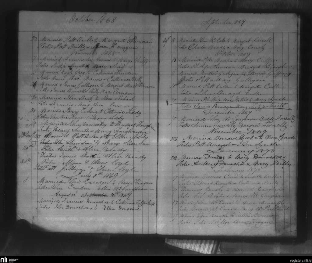 Ballintemple; County of Cavan; Diocese of Kilmore. Marriages, Oct. 1868 to Feb. 1870