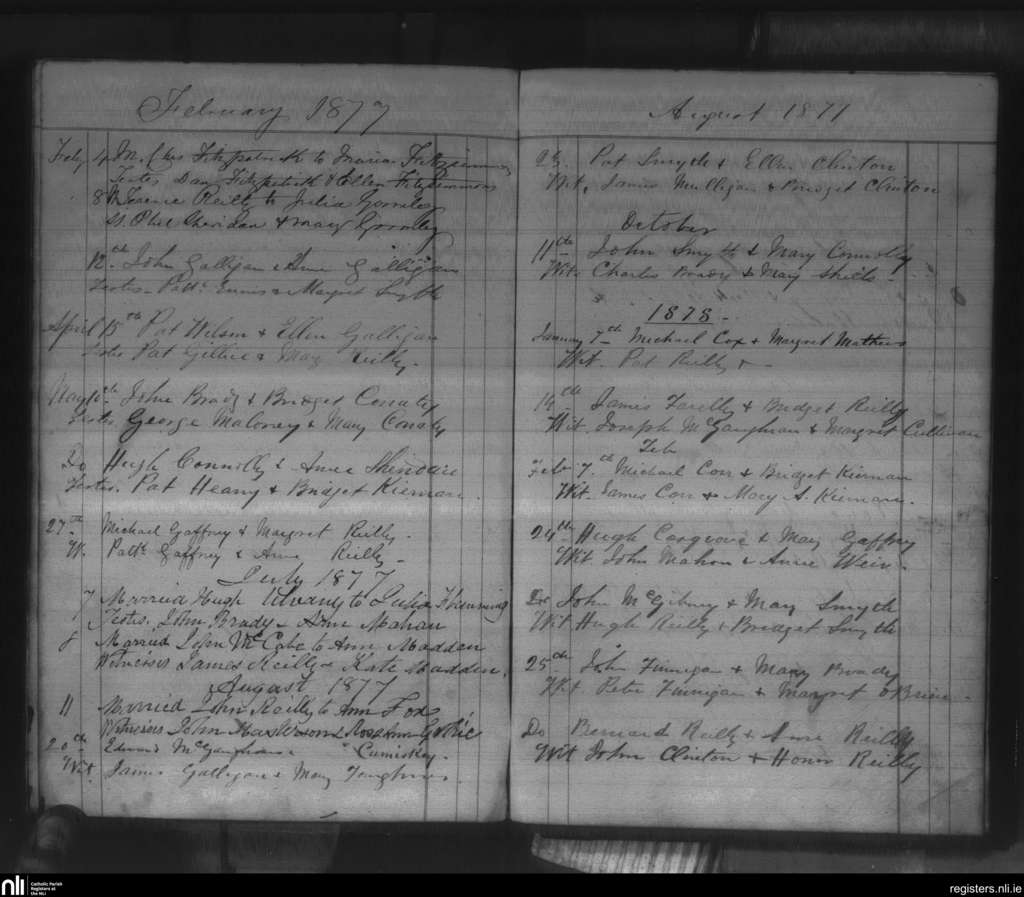 Ballintemple; County of Cavan; Diocese of Kilmore. Marriages, Feb. 1877 to Feb. 1878