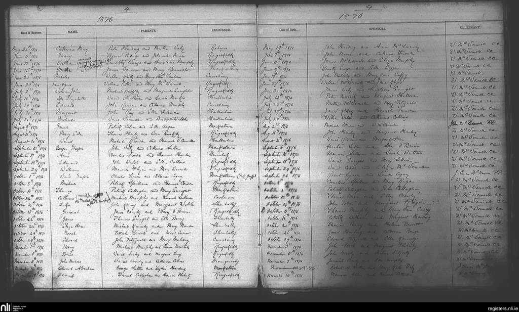 Monkstown; County of Cork; Diocese of Cork and Ross. Baptisms, May 1876 to Nov. 1876