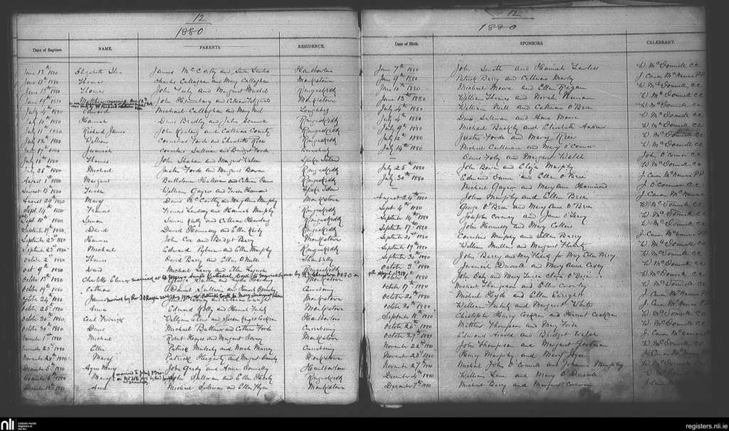 Monkstown; County of Cork; Diocese of Cork and Ross. Baptisms, June 1880 to Dec. 1880