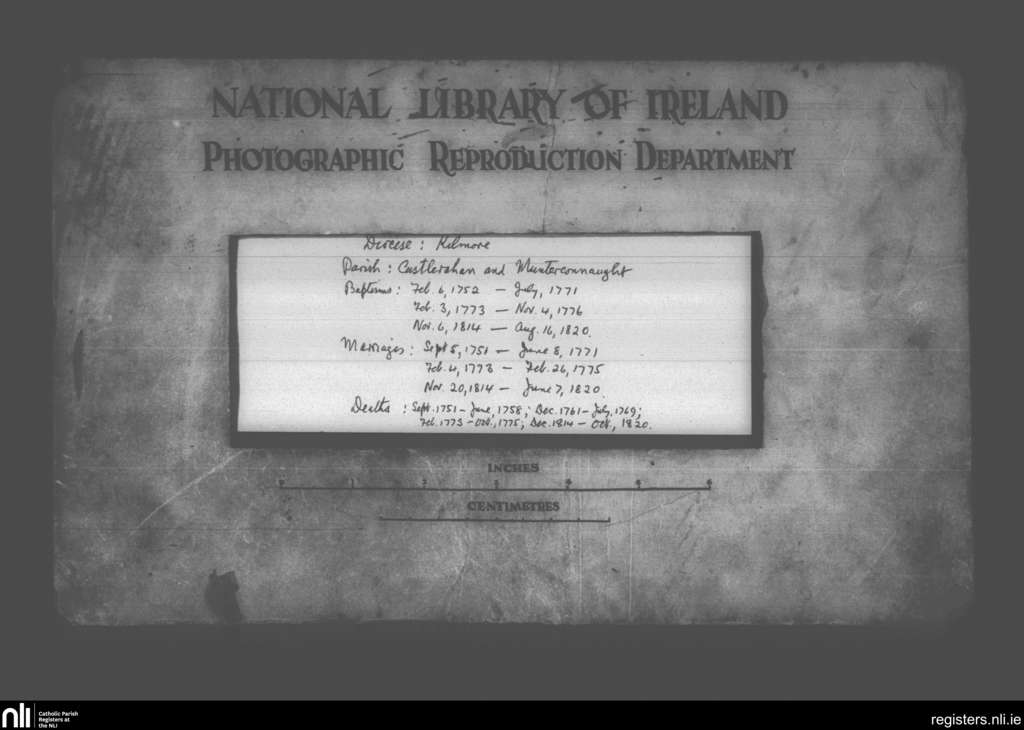 Castlerahan and Munterconnaught; County of Cavan; Diocese of Kilmore. Baptisms, Marriages, Deaths