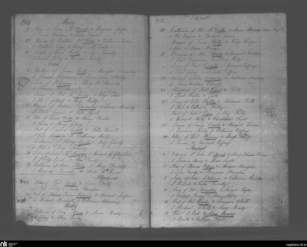 Castlerahan and Munterconnaught; County of Cavan; Diocese of Kilmore. Baptisms, May 1861 to Aug. 1861