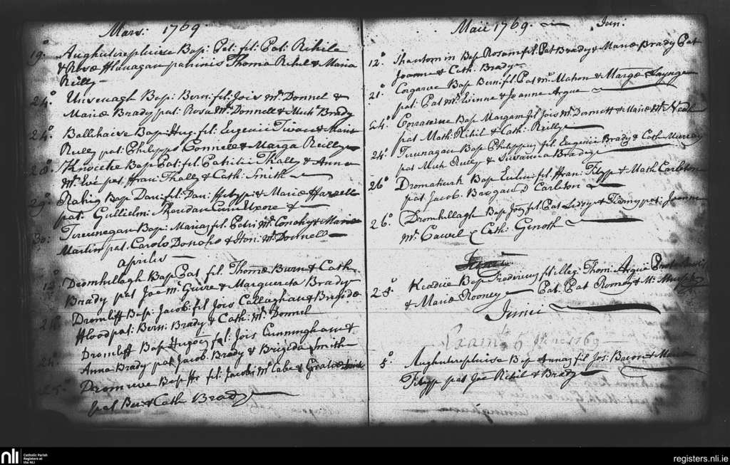 Castletara; County of Cavan; Diocese of Kilmore. Marriages, Oct. 1768 to Mar. 1769