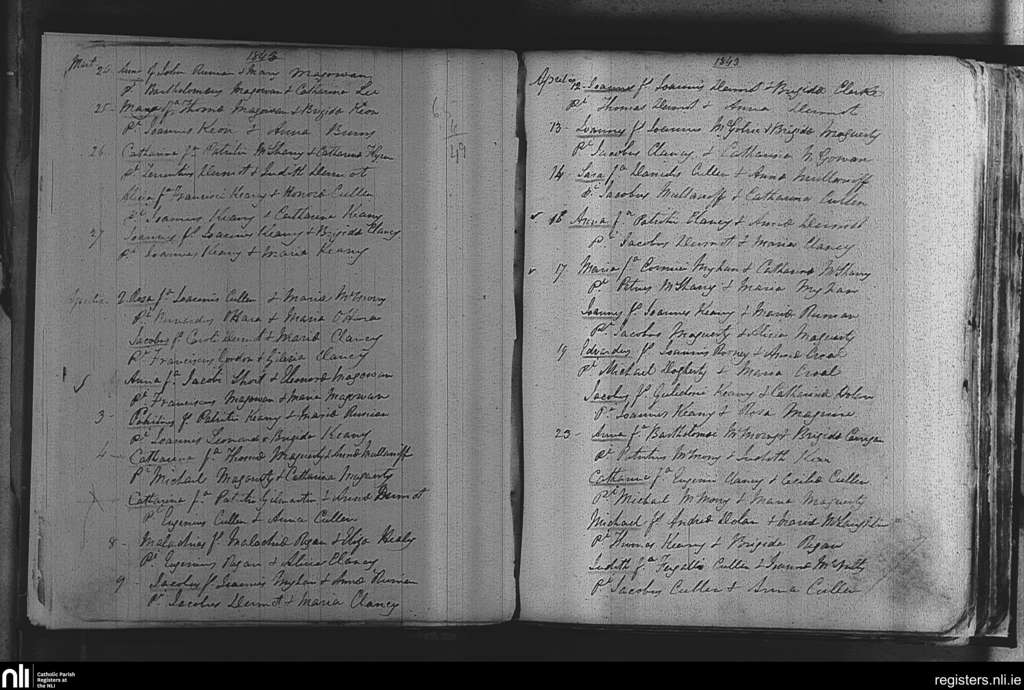 Clooneclare; County of Leitrim; Diocese of Kilmore. Baptisms, Mar. 1843 to Apr. 1843