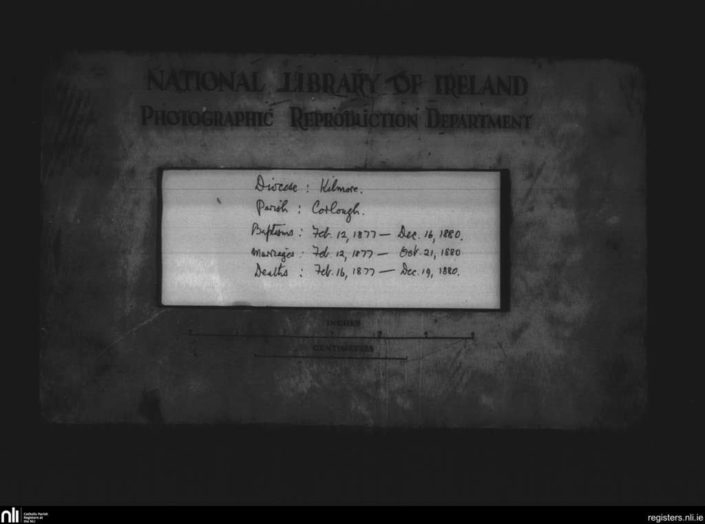 Corlough; Contae Cavan; Deoise Kilmore. Baptisms, Marriages, Deaths