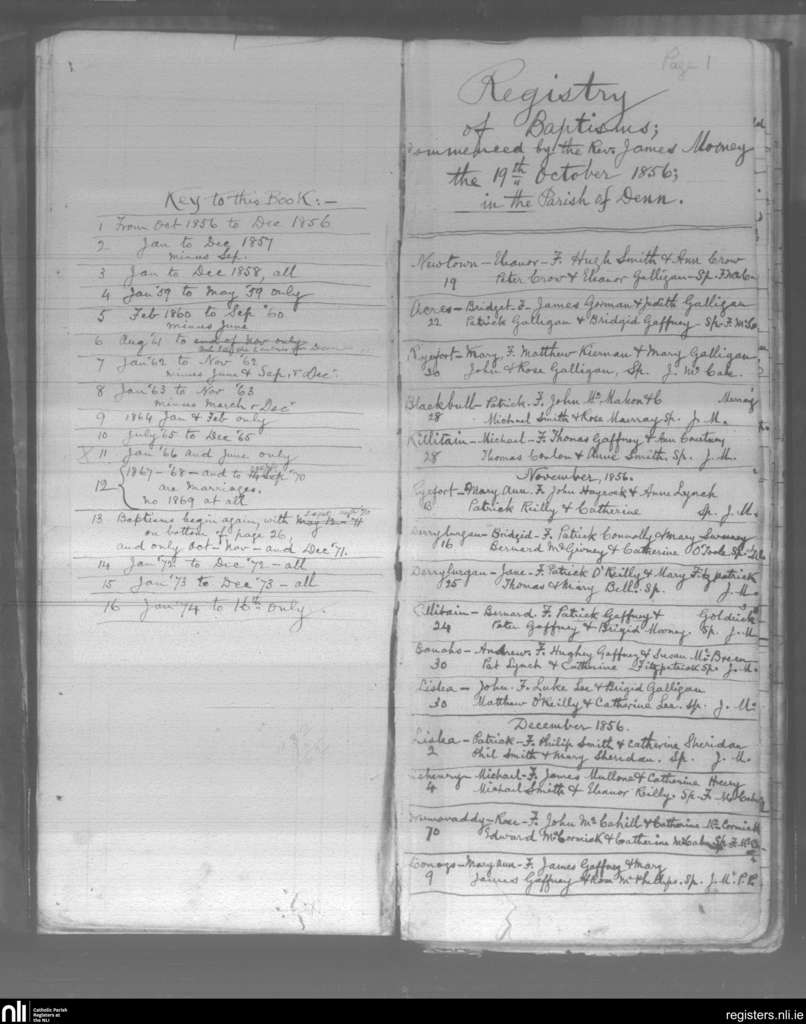 Denn; County of Cavan; Diocese of Kilmore. Baptisms, Oct. 1856 to Dec. 1856