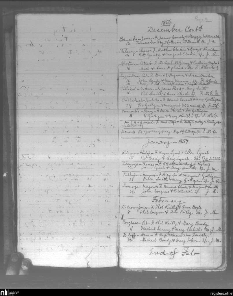 Denn; County of Cavan; Diocese of Kilmore. Baptisms, Dec. 1856 to Feb. 1857