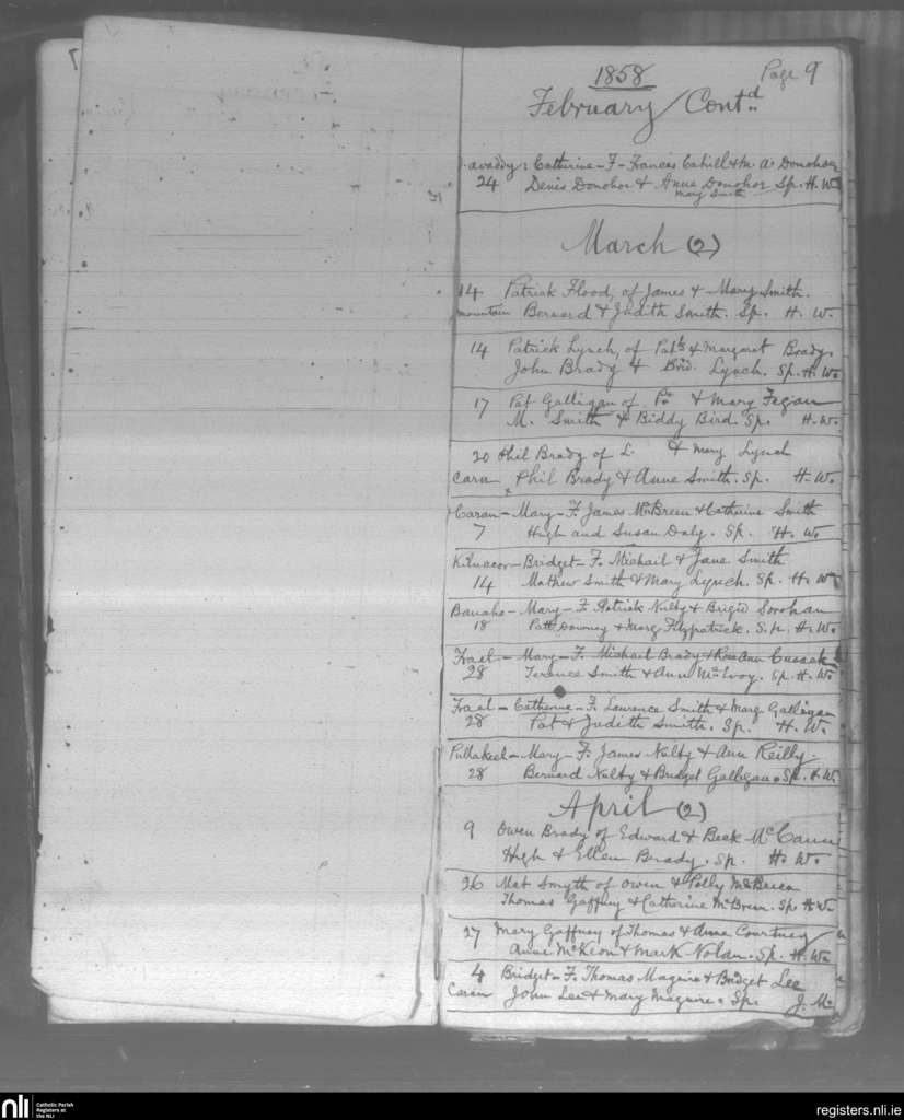 Denn; County of Cavan; Diocese of Kilmore. Baptisms, Feb. 1858 to Apr. 1858