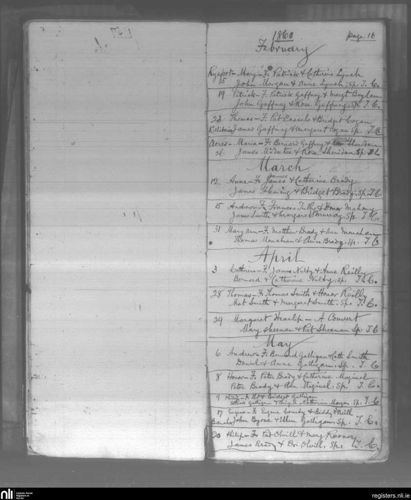 Denn; County of Cavan; Diocese of Kilmore. Baptisms, Feb. 1860 to May 1860
