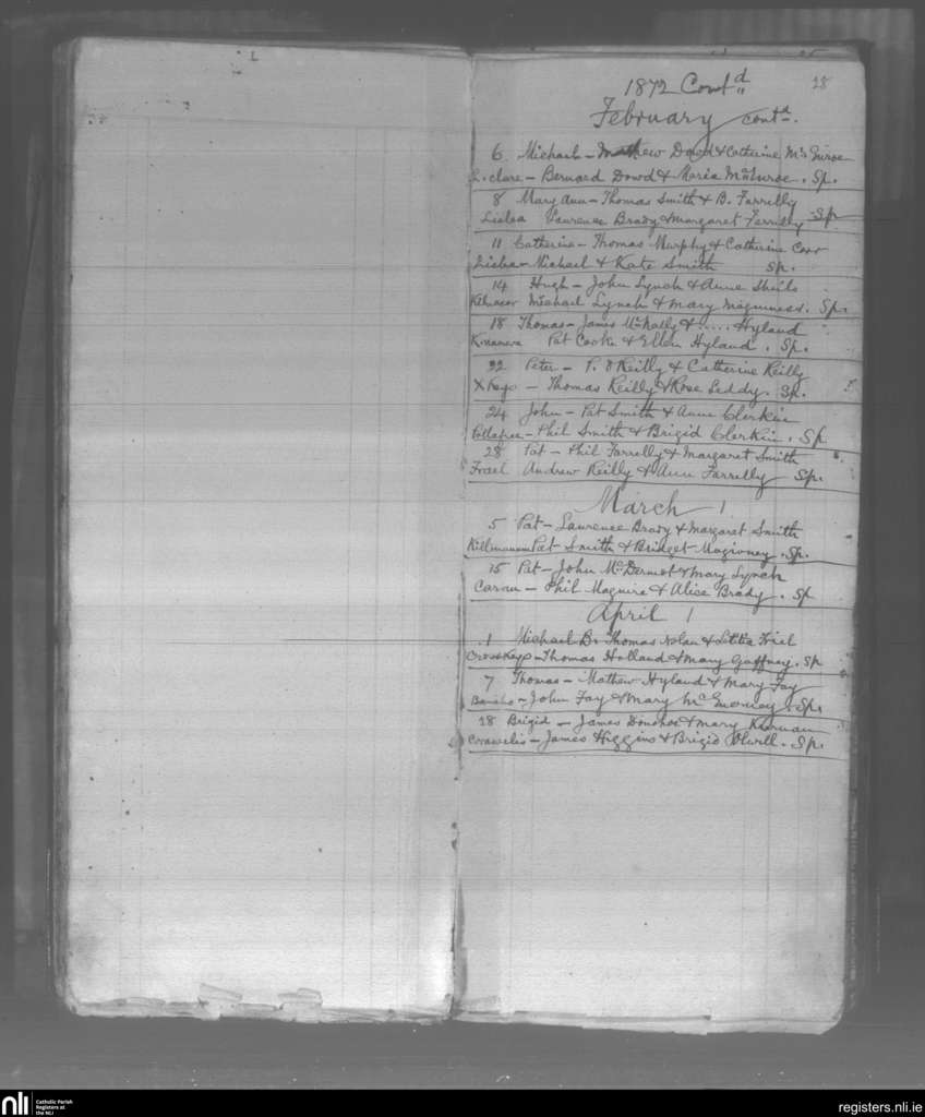 Denn; County of Cavan; Diocese of Kilmore. Baptisms, Feb. 1872 to Apr. 1872