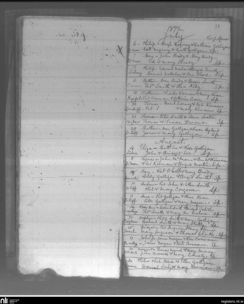 Denn; County of Cavan; Diocese of Kilmore. Baptisms, July 1872 to Aug. 1872
