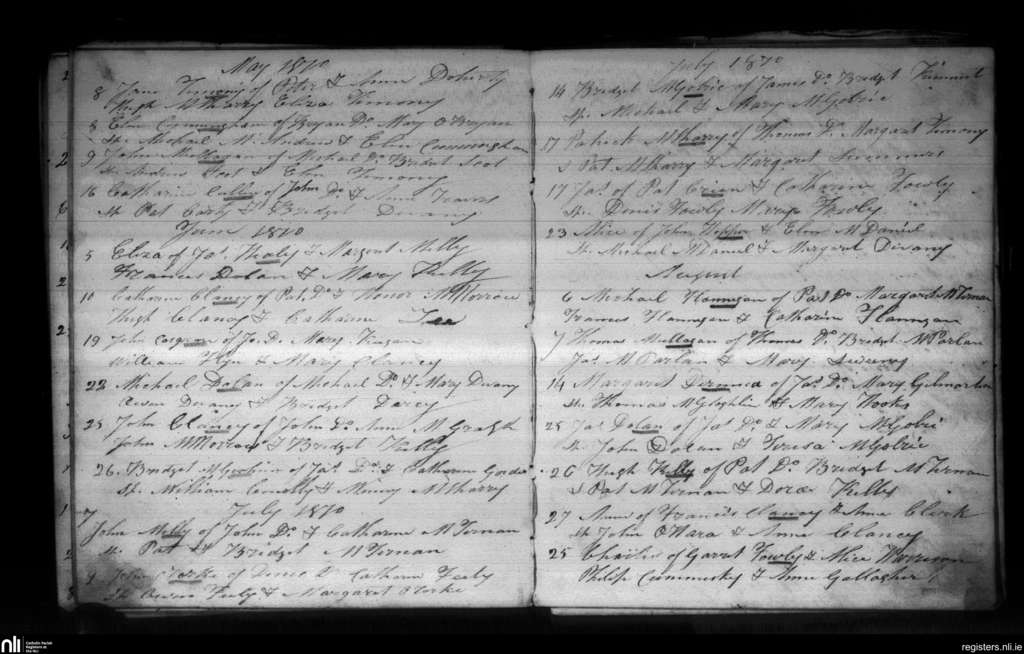 Drumlease; County of Leitrim; Diocese of Kilmore. Baptisms, May 1870 to Aug. 1870
