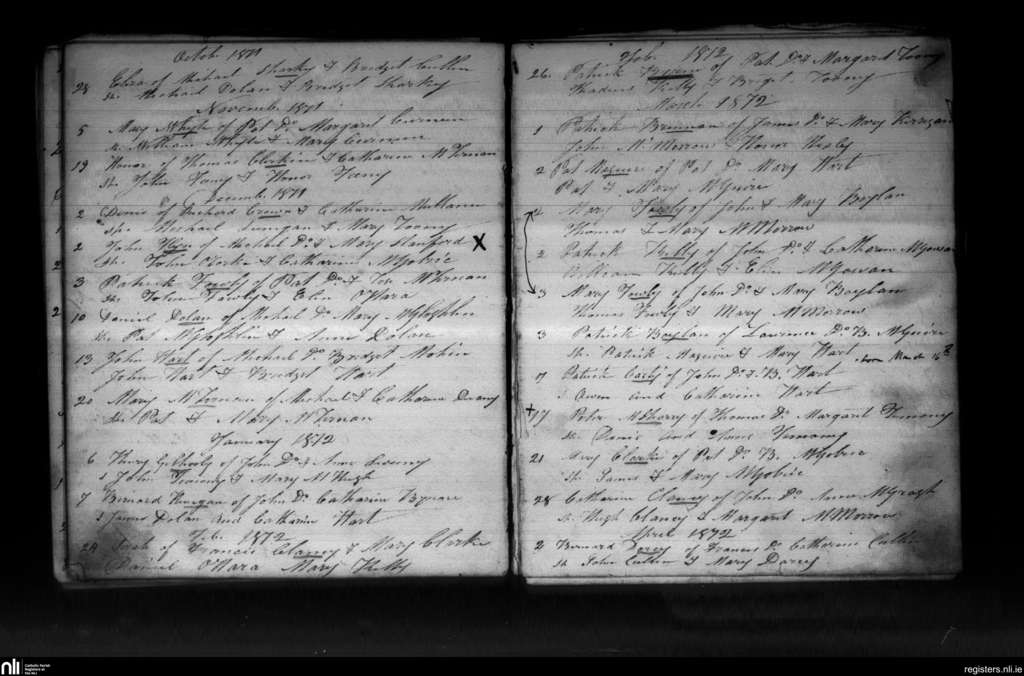 Drumlease; County of Leitrim; Diocese of Kilmore. Baptisms, Oct. 1871 to Apr. 1872