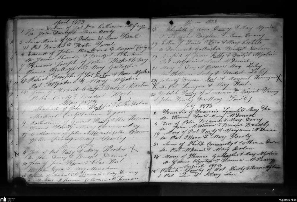 Drumlease; County of Leitrim; Diocese of Kilmore. Baptisms, Apr. 1873 to Aug. 1873