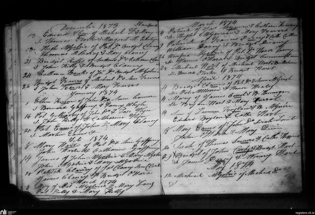 Drumlease; County of Leitrim; Diocese of Kilmore. Baptisms, Dec. 1873 to May 1874