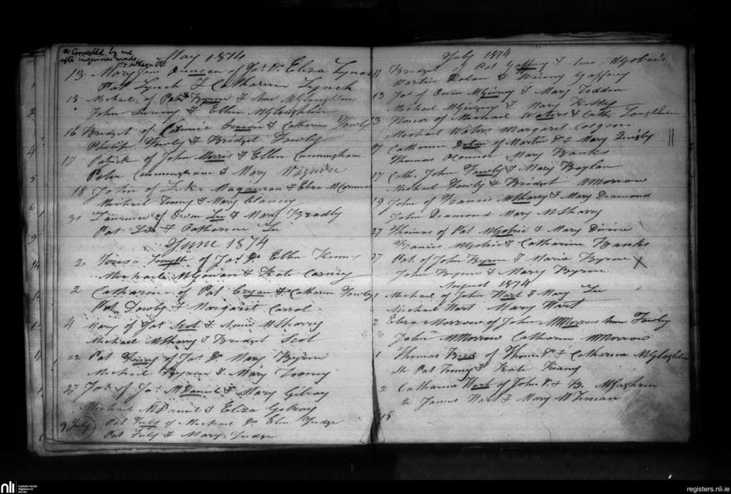 Drumlease; County of Leitrim; Diocese of Kilmore. Baptisms, May 1874 to Aug. 1874