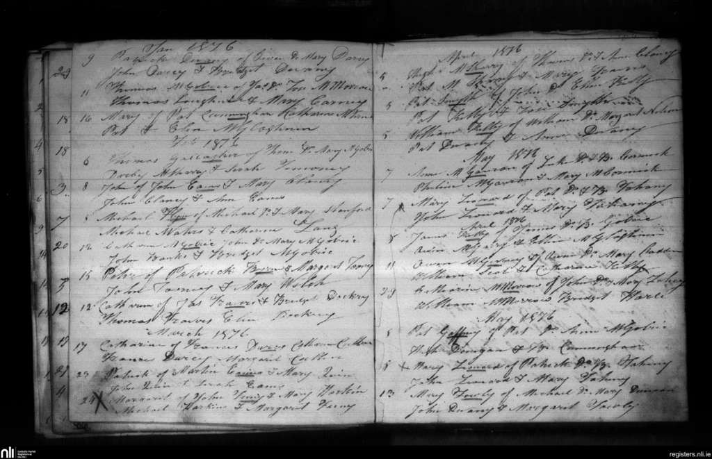 Drumlease; County of Leitrim; Diocese of Kilmore. Baptisms, Jan. 1876 to May 1876
