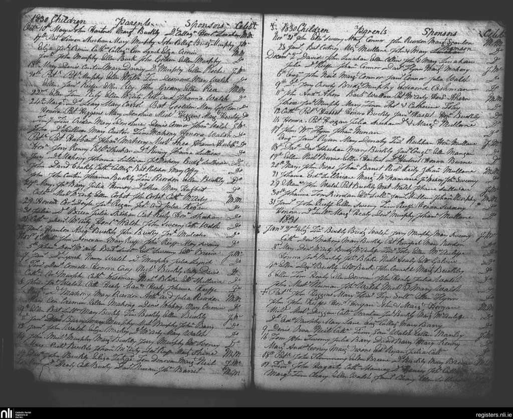 Mourneabbey; County of Cork; Diocese of Cloyne. Baptisms, Oct. 1830 to Jan. 1831