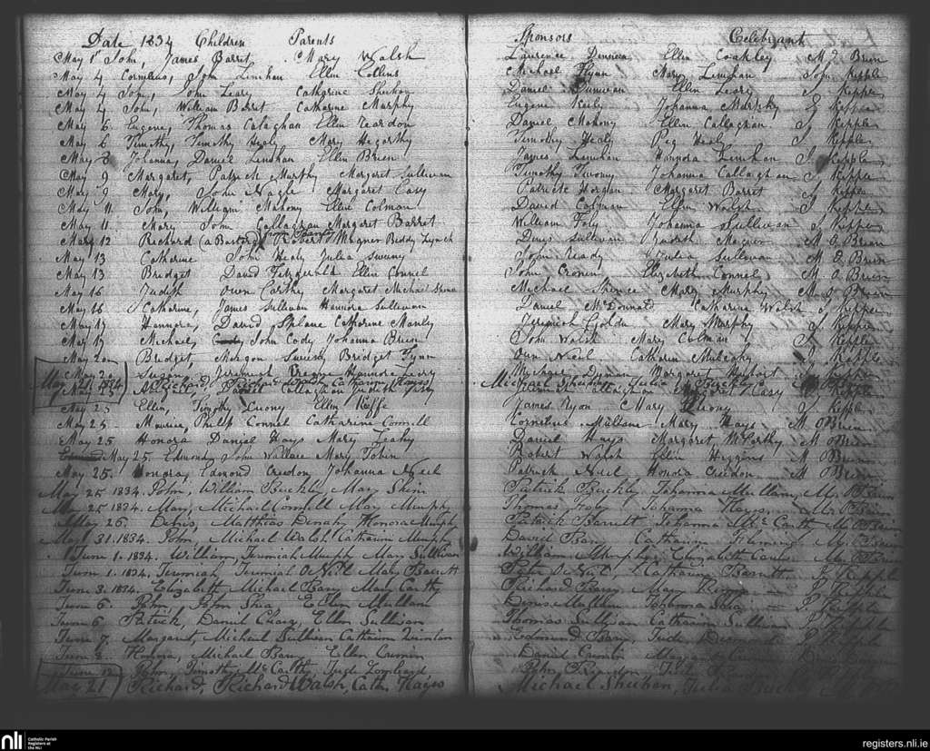 Mourneabbey; County of Cork; Diocese of Cloyne. Baptisms, May 1834 to June 1834