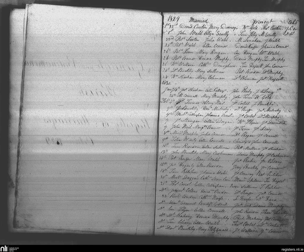 Mourneabbey; County of Cork; Diocese of Cloyne. Marriages, Oct. 1829 to Feb. 1830