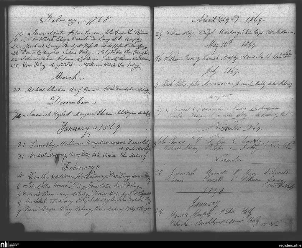 Mourneabbey; County of Cork; Diocese of Cloyne. Marriages, Feb. 1868 to Jan. 1870