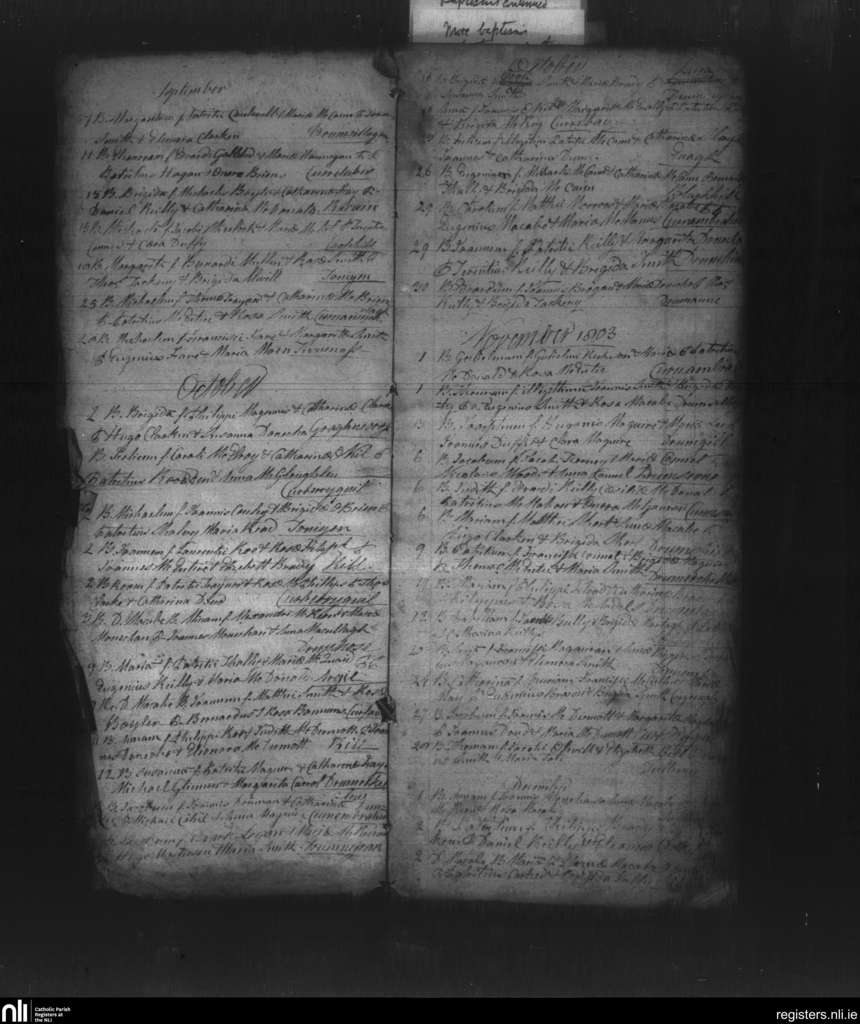 Kilsherdany; County of Cavan; Diocese of Kilmore. Baptisms, Sep. 1803 to Dec. 1803
