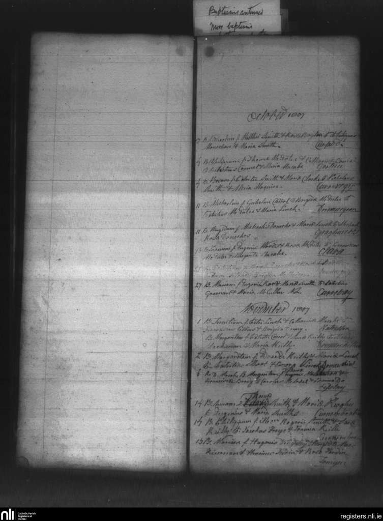 Kilsherdany; County of Cavan; Diocese of Kilmore. Baptisms, Oct. 1807 to Nov. 1807