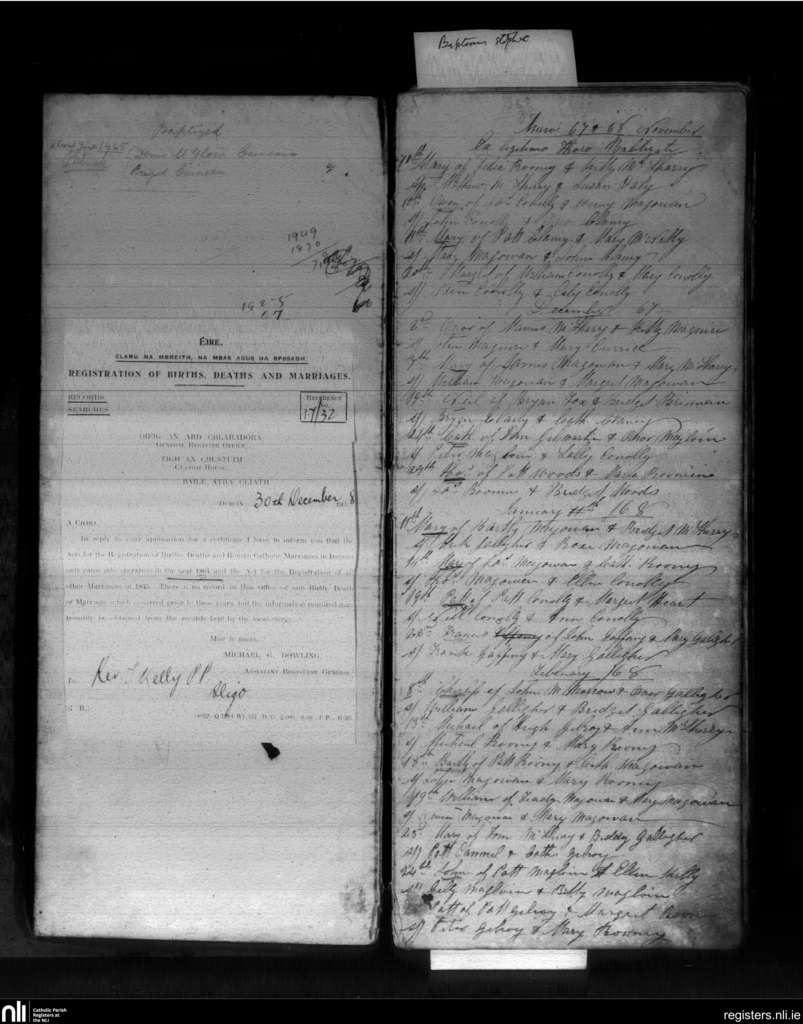 Glenade; County of Sligo, Leitrim; Diocese of Kilmore. Baptisms, Nov. 1867 to Feb. 1868