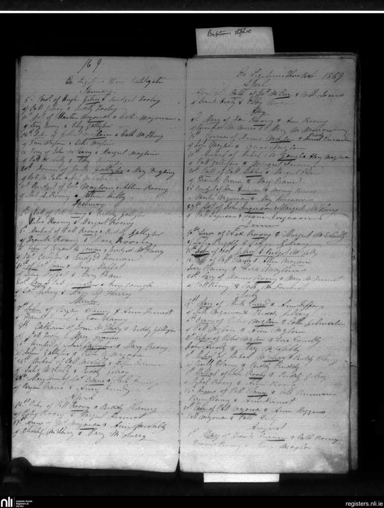 Glenade; County of Sligo, Leitrim; Diocese of Kilmore. Baptisms, Jan. 1869 to Aug. 1869