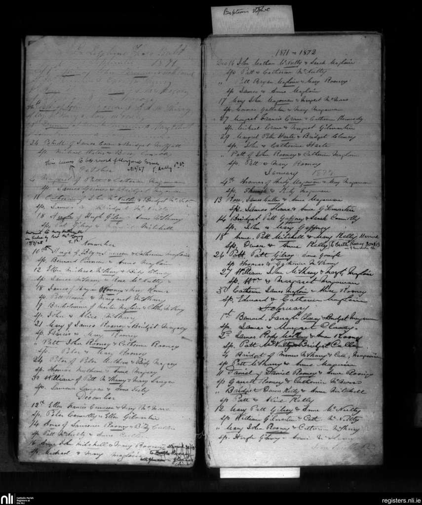 Glenade; County of Sligo, Leitrim; Diocese of Kilmore. Baptisms, Sep. 1871 to Feb. 1872