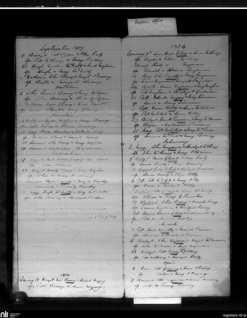 Glenade; County of Sligo, Leitrim; Diocese of Kilmore. Baptisms, Sep. 1873 to Apr. 1874