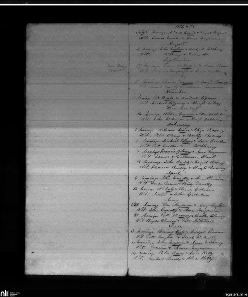 Glenade; County of Sligo, Leitrim; Diocese of Kilmore. Marriages, July 1874 to June 1875