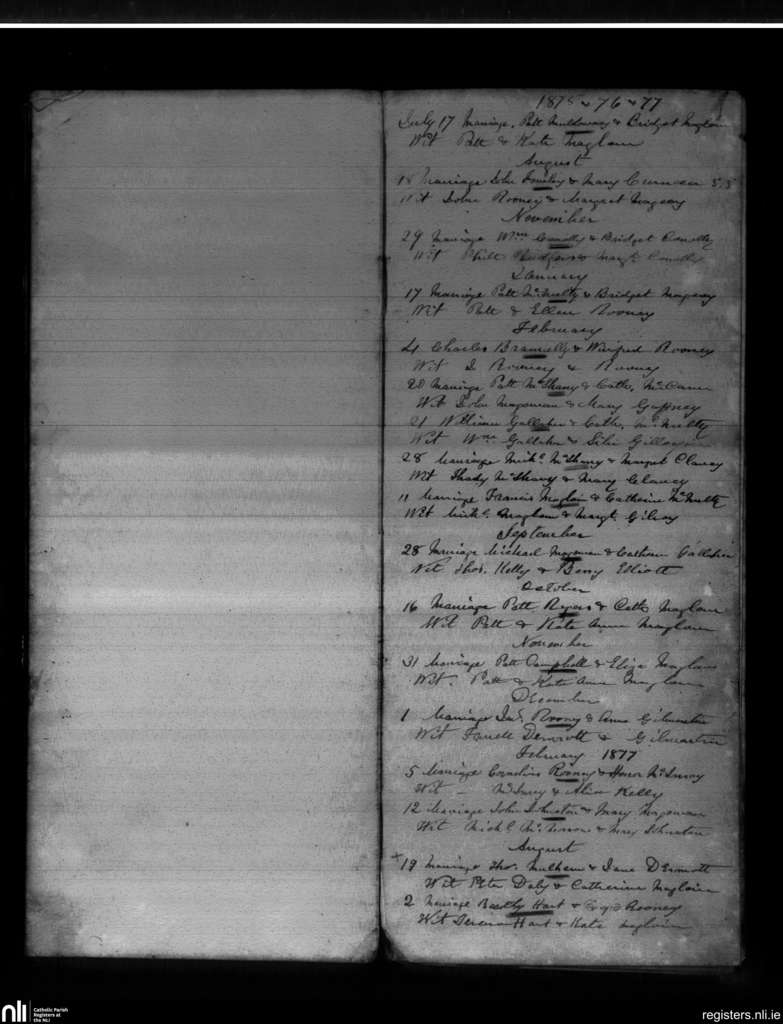 Glenade; County of Sligo, Leitrim; Diocese of Kilmore. Marriages, July 1875 to Aug. 1877