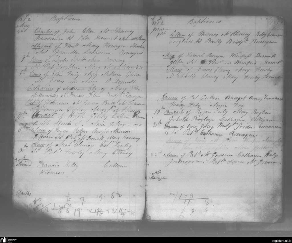 Killasnet; County of Leitrim; Diocese of Kilmore. Baptisms, Marriages, Deaths, May 1852 to June 1852