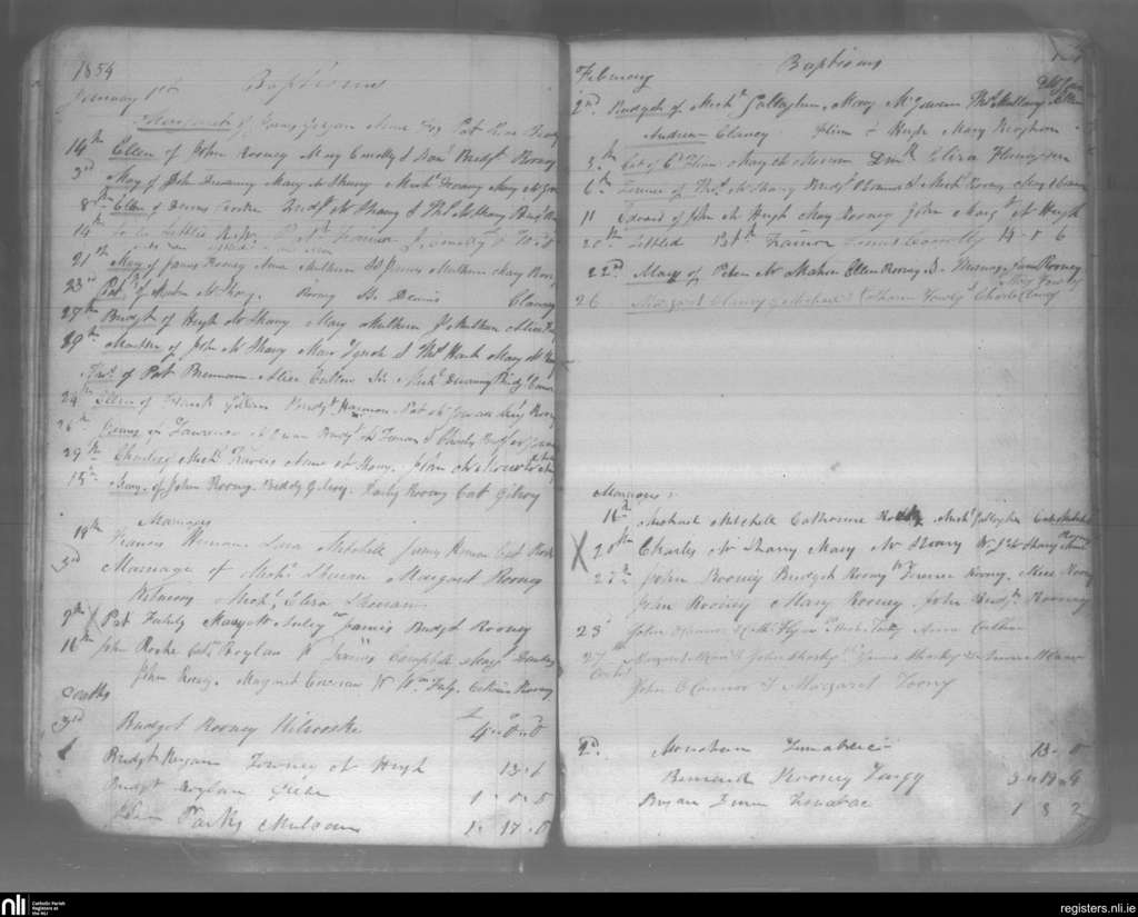 Killasnet; County of Leitrim; Diocese of Kilmore. Baptisms, Marriages, Deaths, Jan. 1854 to Feb. 1854