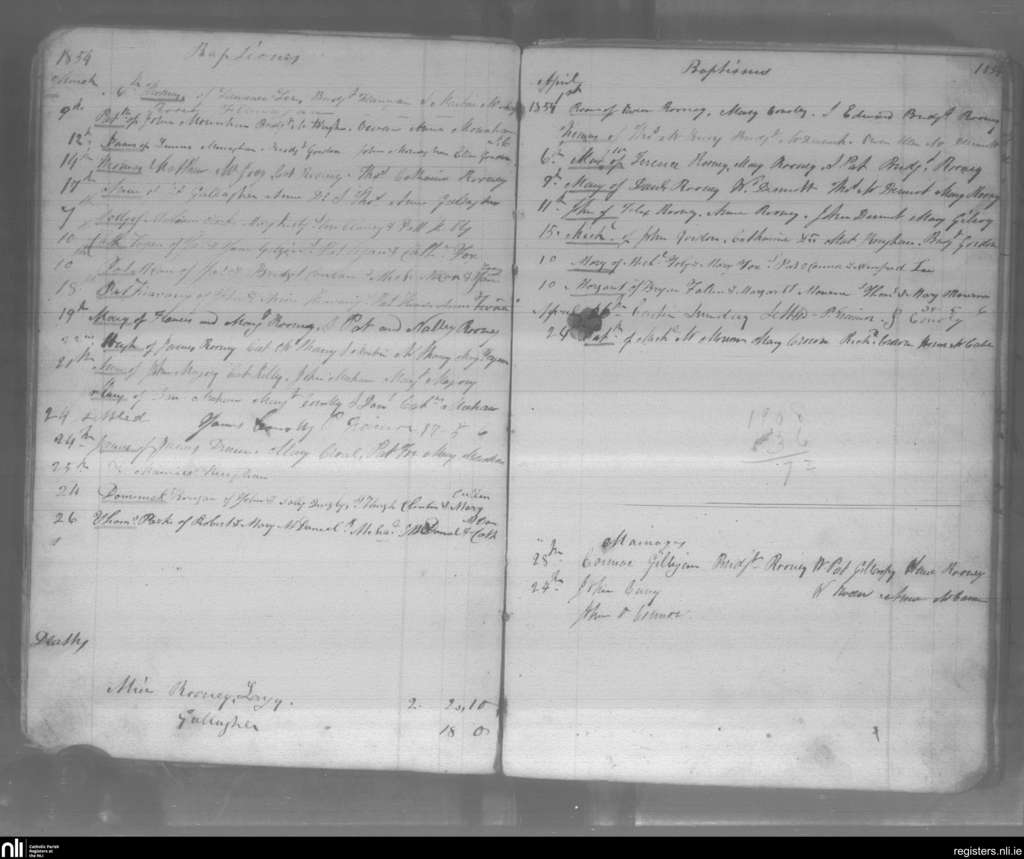 Killasnet; County of Leitrim; Diocese of Kilmore. Baptisms, Marriages, Deaths, Mar. 1854 to Apr. 1854
