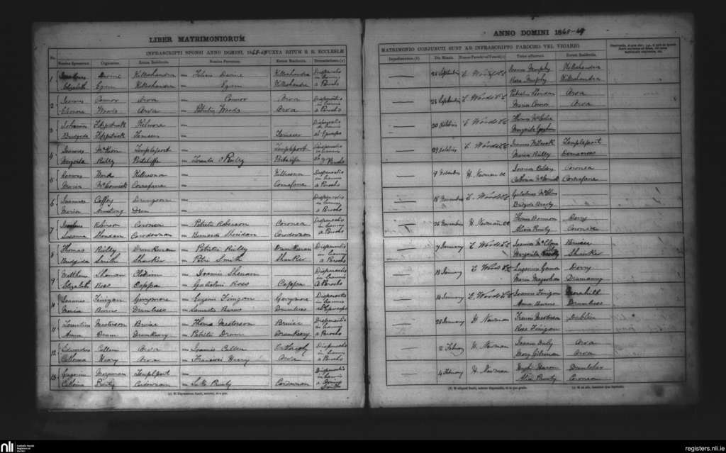 Killeshandra; County of Cavan; Diocese of Kilmore. Marriages, Sep. 1868 to Feb. 1869