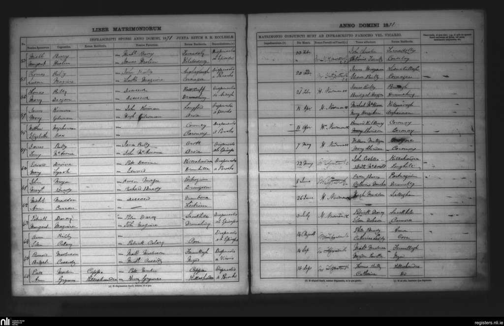 Killeshandra; County of Cavan; Diocese of Kilmore. Marriages, Feb. 1871 to Sep. 1871